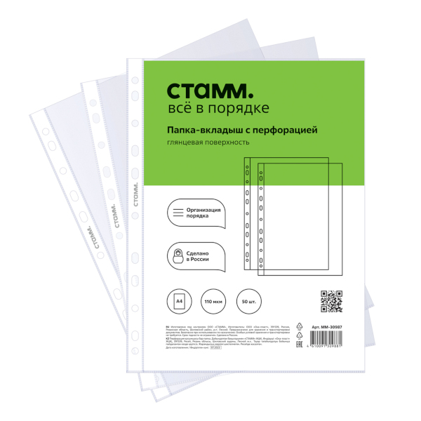 Файл (мультифора) А4 110мкм, прозрачный, глянцевый ММ-30987 (уп 50шт) СТАММ упаковка