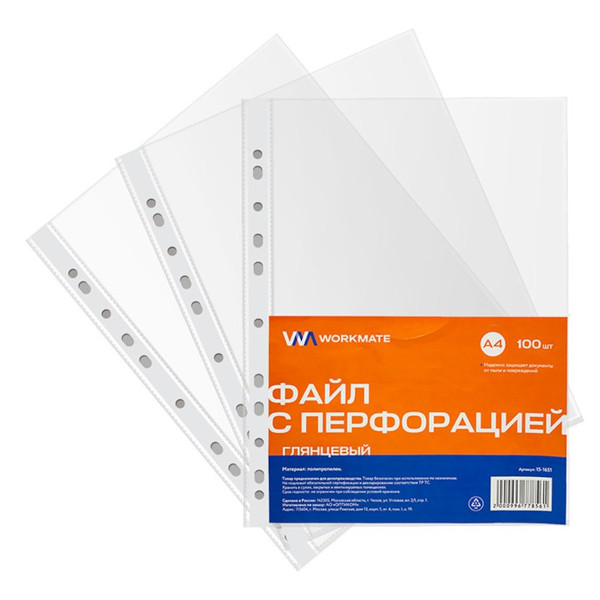 Файл (мультифора) А4, 17мкм, прозрачный, глянцевый 15-1651 (уп 100шт) Workmate упаковка