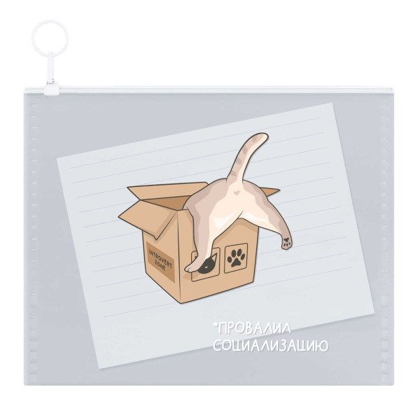 Папка на молнии "ZIP" А6 (160*120мм), пластик, 180мкм, рисунок "Кот в коробке" 72235 Феникс+