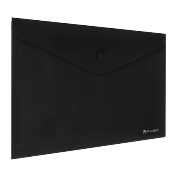 Папка-конверт на кнопке А4, 1отд., 200мкм, черный "Super" 272879 Brauberg
