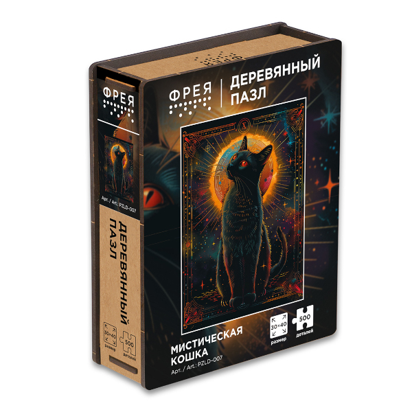 Пазлы деревянные 500 элем. "Мистическая кошка" 400*300мм PZLD-007 ФРЕЯ