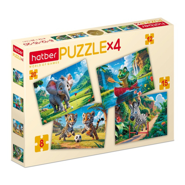 Пазлы 8, 12, 15, 20 элем. дет. "4 в 1. Спортивное сафари" А5 200*140мм ПЗ5_34770 Hatber