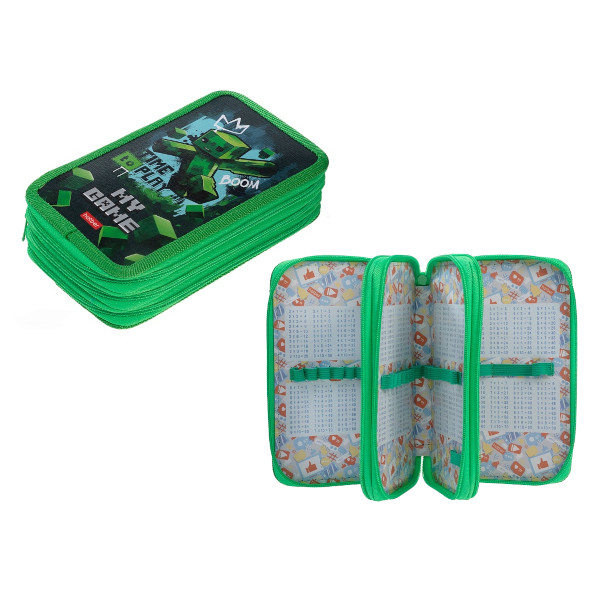 Пенал Hatber "Пиксель" 3отд., с табл.умножения 19*11см, на молнии NPn_48112