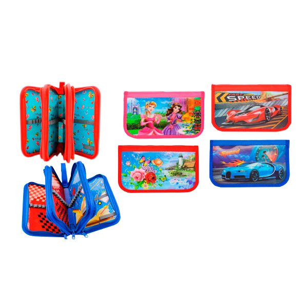 Пенал Basir 3 отд., без напол., 19,5*13 см, на молнии, девочковая тема, ассорти МС-3741