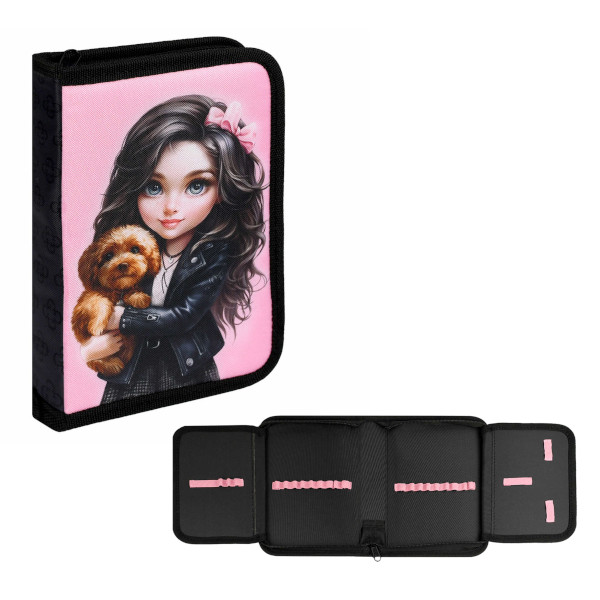 Пенал Феникс+ "Брюнетка с собачкой" 1отд., 2 откид.планки, без напол., 20*13,3*3,5см, молния 68898