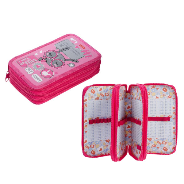 Пенал Hatber "В модном чате" 3отд., с табл.умножения 19*11см, на молнии NPn_48108