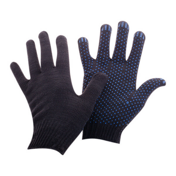 Перчатки трикотажные х/б с ПВХ (точка), черные DGC013K (1 пара)