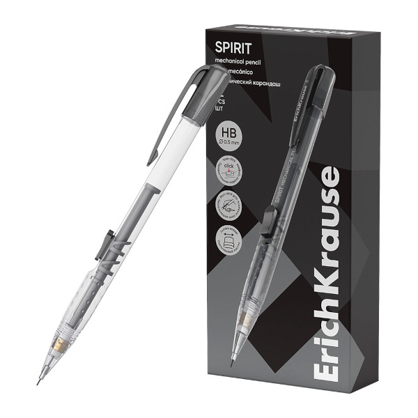 Карандаш механический 0,5мм HB, пластик. корп., прозрач., ластик "Spirit" 60752 Erich Kraus