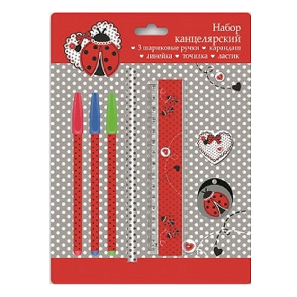 Набор канцеляр Феникс+ "Божья коровка"(цв.шар. ручек (3шт)/карандаш ч/гр/ласт./линейка/точил.) 38026