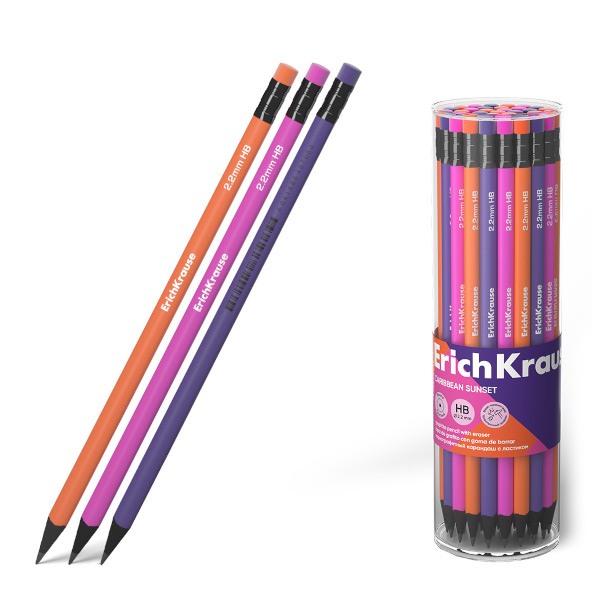 Карандаш ч/гр HB, дерево, круглый, ластик, ассорти "Caribbean Sunset" 60728 Erich Krause