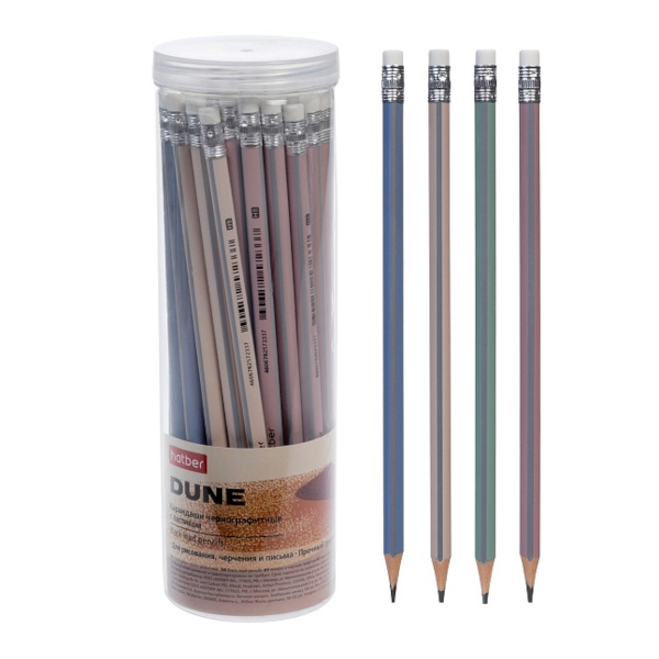 Карандаш ч/гр HB, пластик, 3-гран., ластик, ассорти "Dune" BL_089584 Hatber