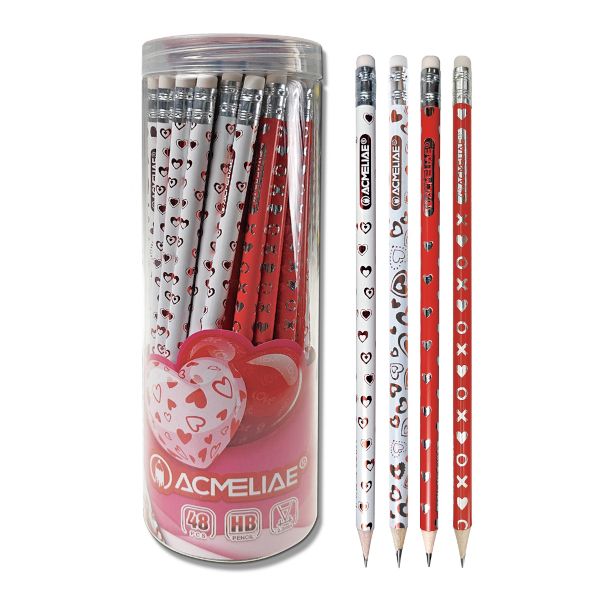 Карандаш ч/гр HB, дерево, круглый, ластик, ассорти "Сердца" вкладыш 43216/43205 ACMELIAE