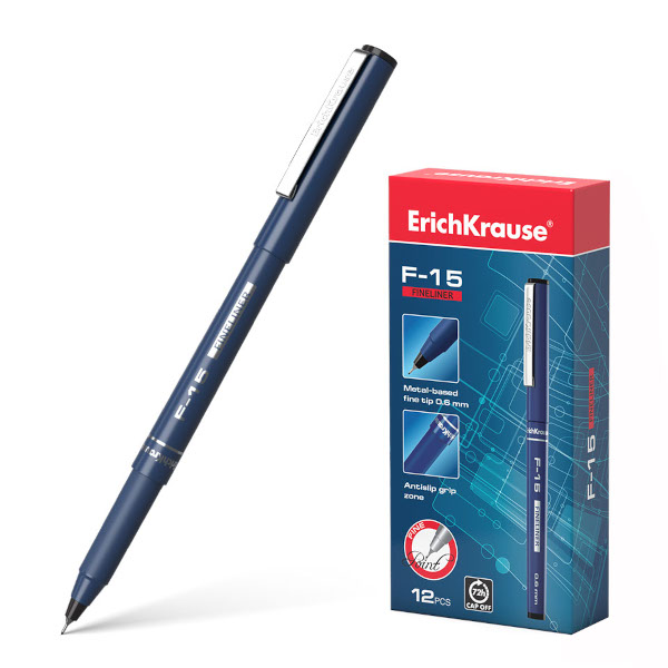 Ручка капиллярная 0,6мм, черный, корп. синий "Classic F-15" 37066 Erich Krause