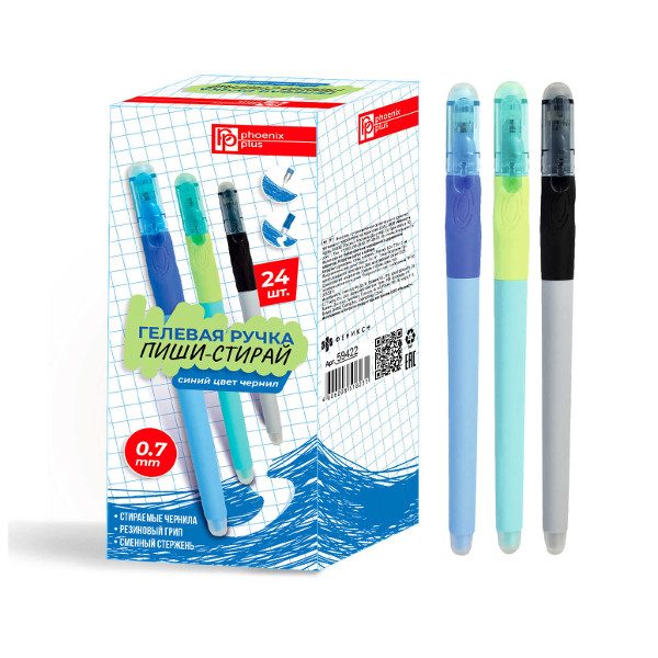 Ручка гелевая стираемая 0,7мм, синий, корп. ассорти "Пиши-Стирай" 59442 Феникс+