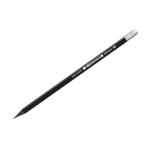 Карандаш ч/гр HB, пластик, 6-гран., ластик, черный 269153 OfficeSpace