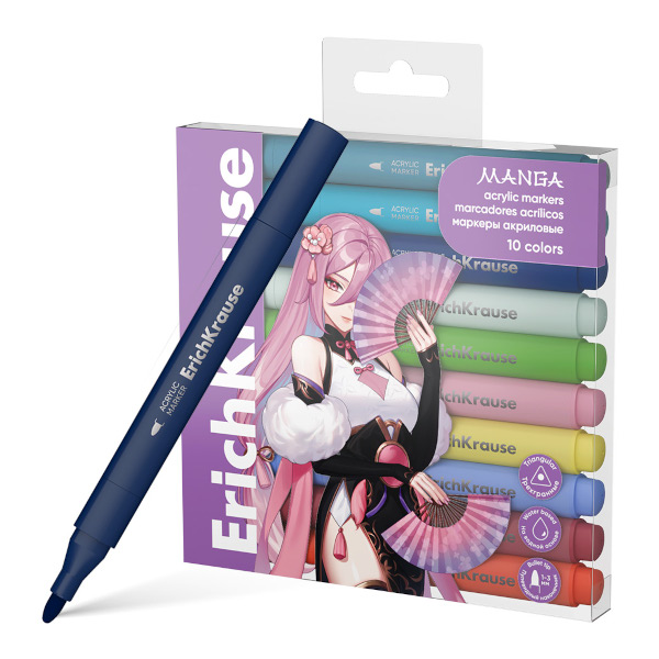Набор маркеров акриловых Erich Krause "Manga" 10цв., пулевид., ПЭТ-бокс 62035