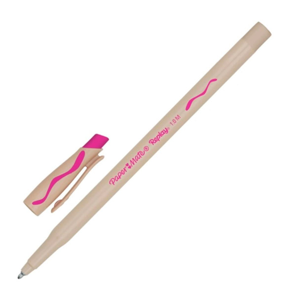Ручка шариковая стираемая 1,2мм, розовый, корп. бежевый "Replay" S0851441 Paper Mate