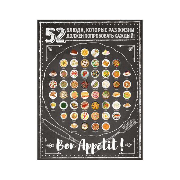 Плакат со скретч-слоем "52 блюда,которые раз в жизни должен попр-ть каждый!" 40*60см 1091653 Эксмо