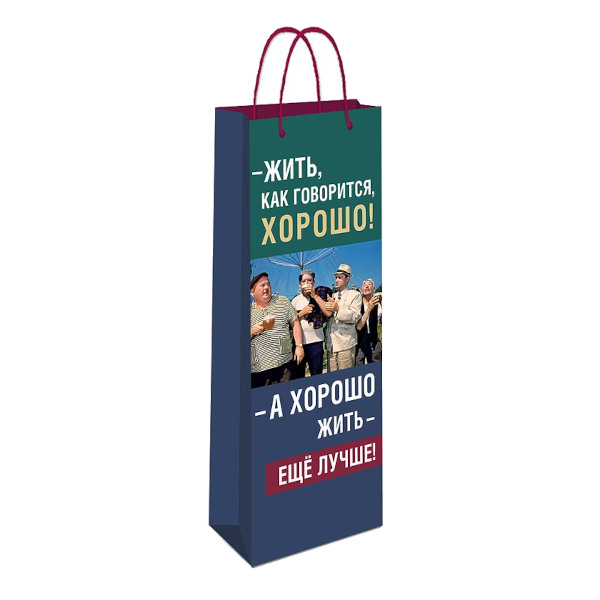Пакет под бутылку 36*12*8,5см "Жить, как говорится, хорошо" бумажный 0194.394 Арт Дизайн