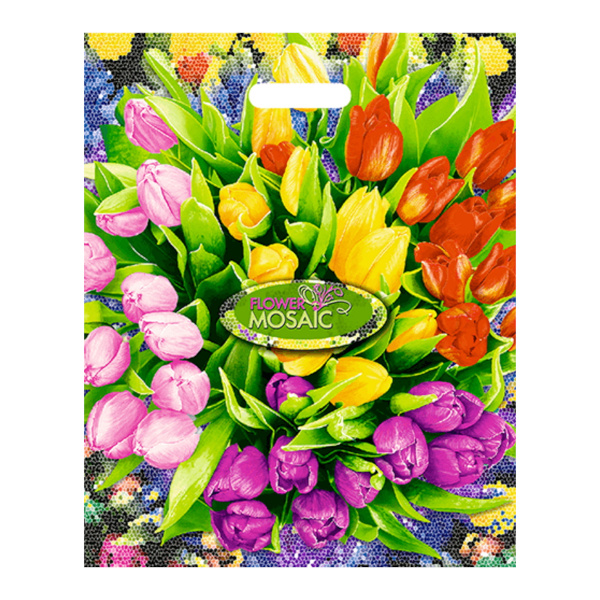 Пакет полиэтиленовый 38*47см "Цветочная мозайка" 60мкм, вырубная ручка НФ-00000864 НЕО-ПАК