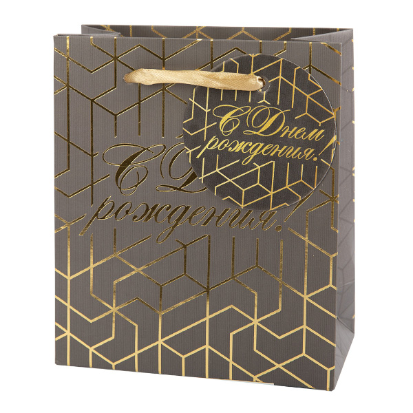 Пакет бумажный 14*12*6см "С днем рождения 02" коричневый BASXS Stilerra