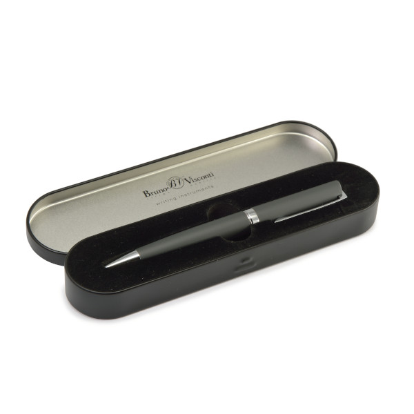 Ручка шар. авт. Bruno Visconti "MILANO" синяя, серый корпус, черн. футляр 1,0мм 20-0227/01