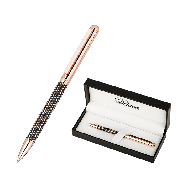Ручка шариковая Delucci "Artista", синяя, корпус медь/черный в подар. уп. 1мм CPs_11409