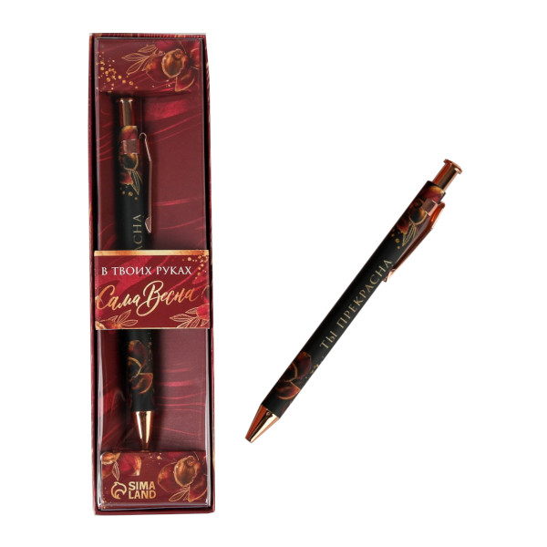 Ручка подарочная шар. 0,7мм, синяя "В твоих руках сама весна" рис, кноп.мех., карт.уп 7106996 ArtFox