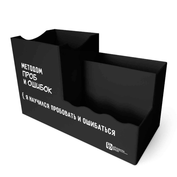 Подставка для пиш. прин. "Методом проб и ошибок" 3отд., 15,5*10*7,3см, пластик, черный 69637 Феникс+