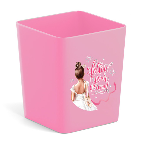 Подставка-стакан для пиш. прин. "Base.Pointes" 7,9*7,9*9см, квадрат., пластик, розовый 61607 EK