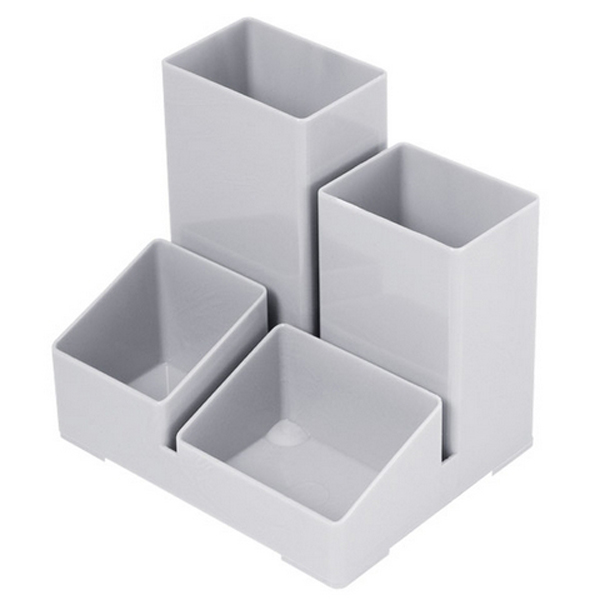 Подставка для пиш. прин. "Юниор" 4 отд., 9,3*11,4*10,4см, пластик, серый металлик ОР26 Стамм