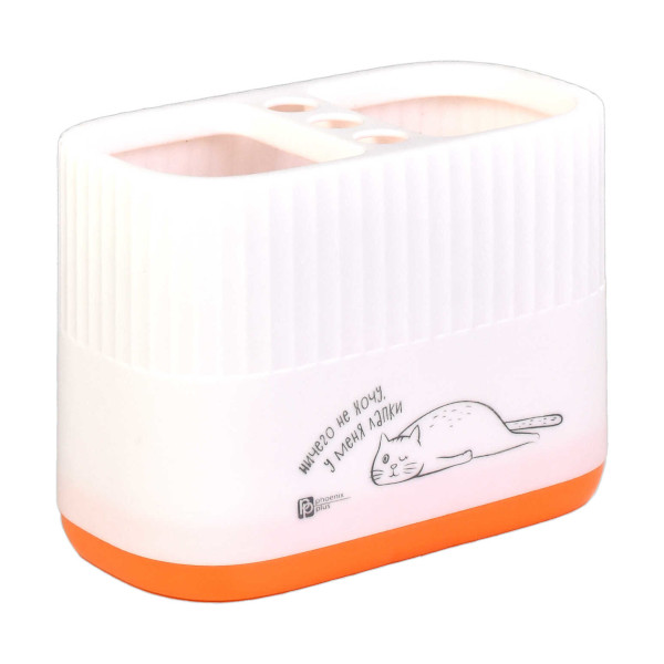 Подставка для пиш. прин. "Кот на белом" 13,8*10*7см, пластик, белый/оранж. 62680 Феникс+
