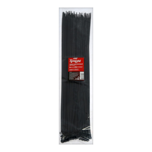 Хомуты (стяжки), нейлоновые, 3,6*400мм, черные (1уп*100шт) 9380711 ТУНДРА упаковка