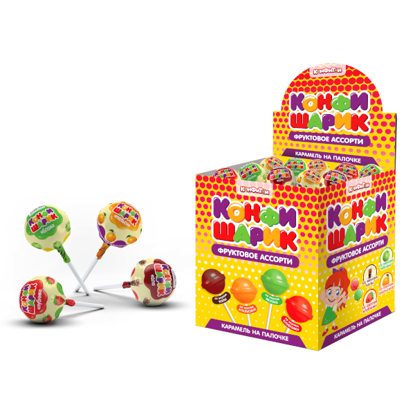 Карамель леденцовая на палочке "Конфишарик" 10гр, ассорти КТ93795 Конфитой