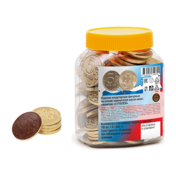 Сладкие монеты "5 РУБЛЕЙ" золото, шоколад 6гр Конфитой КТ94578/93720