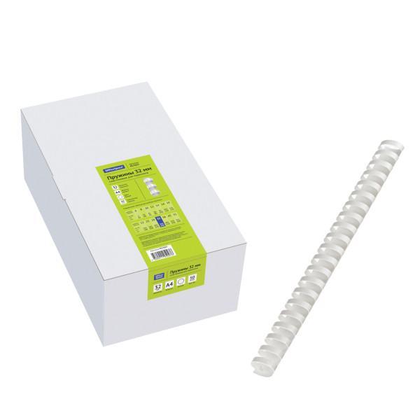 Пружина для переплёта пласт. 32мм (до 300л) белая 50шт OfficeSpace РС7027