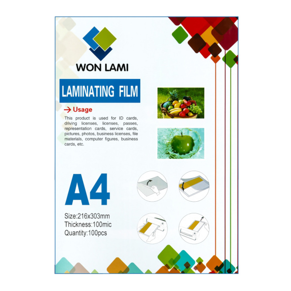 Плёнка для ламинирования 100мкм А4 (216*303мм), глянц. 7681 Won Lami (1уп*100шт)