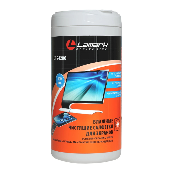 Салфетки чистящие Lamark для экранов ЭЛТ, ЖК, плазменных панелей (100шт) туба 24200