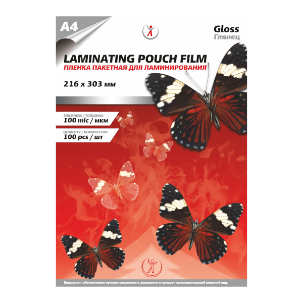 Плёнка для ламинирования 100мкм А4 (216*303мм), глянц. 4334/7390 (1уп*100шт)