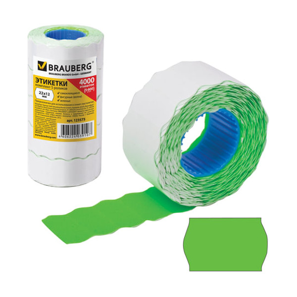Этикет-лента 22*12мм (800шт) волна, зеленая, Brauberg 123575