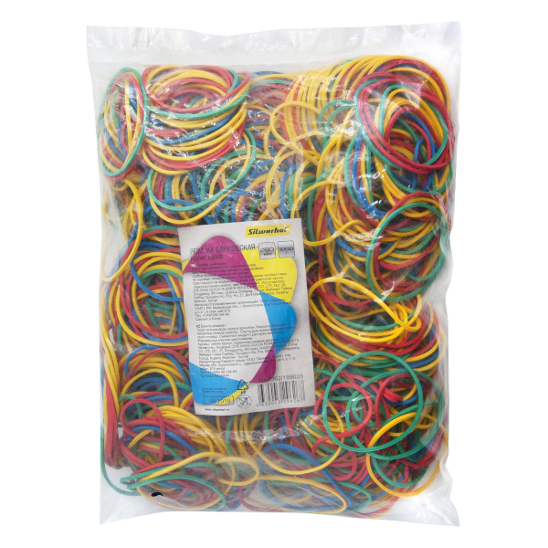 Резинка банковская 60мм, цветн., 100% каучук, 1000г 189020 Silwerhof