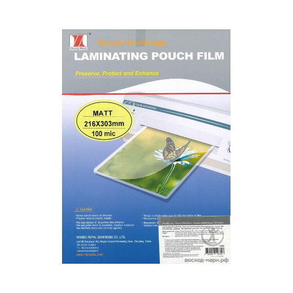 Плёнка для ламинирования 100мкм А4 (216*303мм), матовая 1559 Royal Sovereign (1уп*100шт)