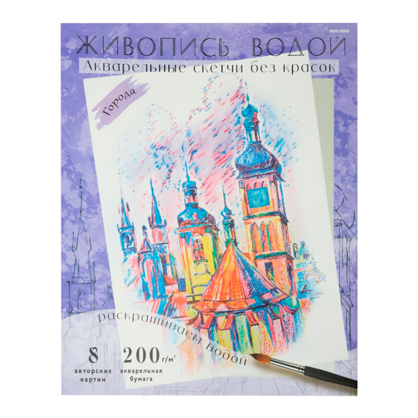 Раскраска водная "Живопись водой. Акварель. Города" 270*330мм, 8л Р-7098 Проф-Пресс