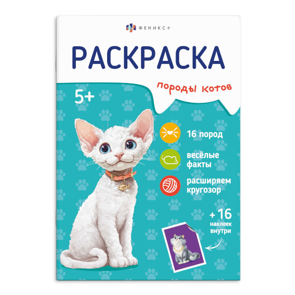 Раскраска с наклейками "Породы. Коты" 165*235мм, 8л, скоба 71530 Феникс+