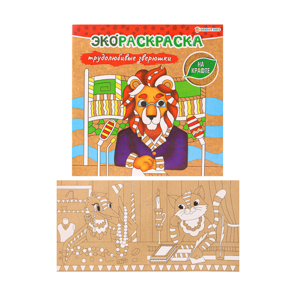 Раскраска- ЭКО на крафте "Трудолюбивые зверюшки" 8л, скрепка Р-0577 Проф-Пресс