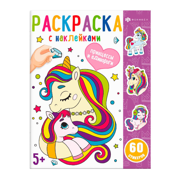 Раскраска с наклейками "Принцессы и единороги" 200*260мм, 8л. 65077 Феникс+