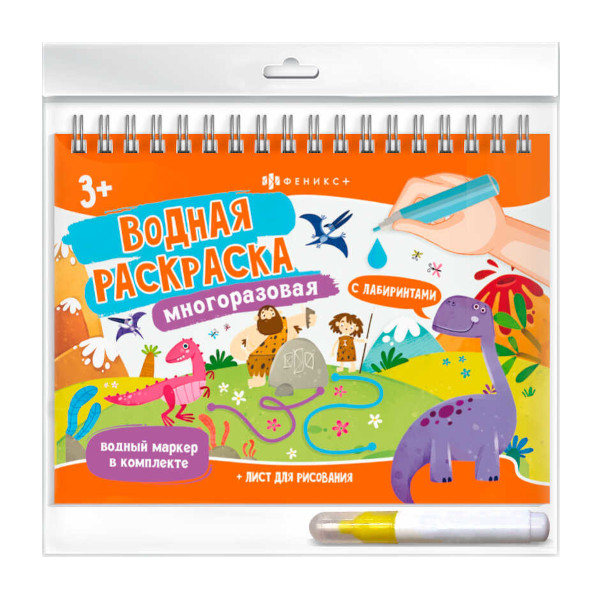 Раскраска водная "Динозавры" 220*160мм, 4л, гребень, маркер 64110 Феникс+