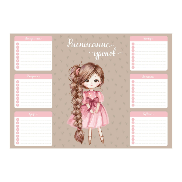 Доп. описание: Расписание уроков А4, арт. 72586/ 50 ДЕВОЧКА С КОСОЙ (210x...