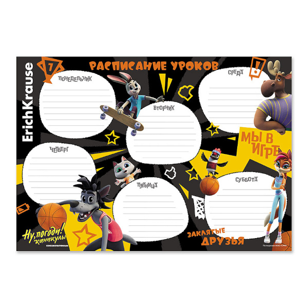 Расписание уроков А4 "Ну, Погоди! Каникулы" 62541 Erich Krause