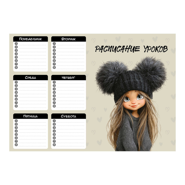 Доп. описание: Расписание уроков А4, арт. 72588/ 50 ДЕВЧОНКА В ШАПКЕ (210...